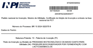 Esta patente descreve um processo biotecnológico de baixo custo para produzir um bioconservador a partir da fermentação com Lacticaseibacillus, um microrganismo seguro e com histórico de uso em alimentos. A inovação não está apenas no produto final, que é natural e eficaz, mas no processo otimizado que o torna economicamente viável. Com essa tecnologia, as patentes da BRC permitem que a indústria substitua aditivos sintéticos por uma alternativa natural sem comprometer a competitividade, tornando o clean label uma realidade acessível para o mercado de massa.
