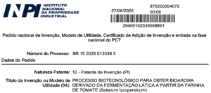 Esta patente detalha um processo para criar um bioaroma natural a partir da fermentação lática da farinha de tomate, um resíduo do agronegócio, aproveitando produto que seria descartado. Essa abordagem de upcycling não só reduz o desperdício industrial, mas também cria uma fonte sustentável e estável para a produção de aromas naturais, que são altamente demandados pelo mercado. Esta é mais uma prova de como as patentes da BRC integram inovação, sabor e sustentabilidade.